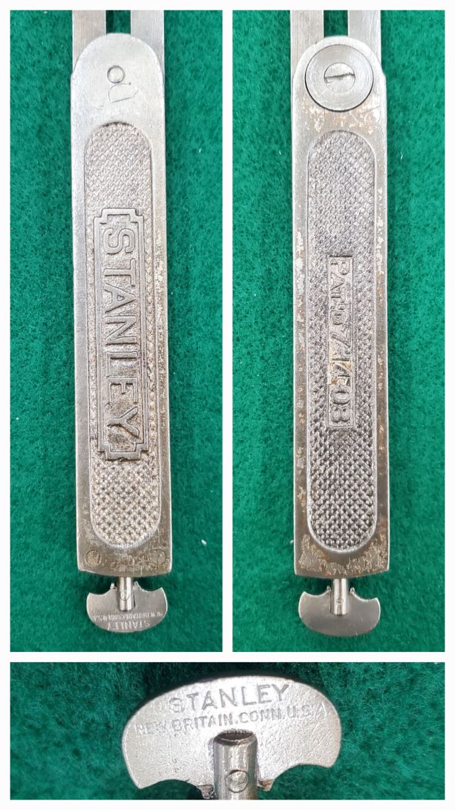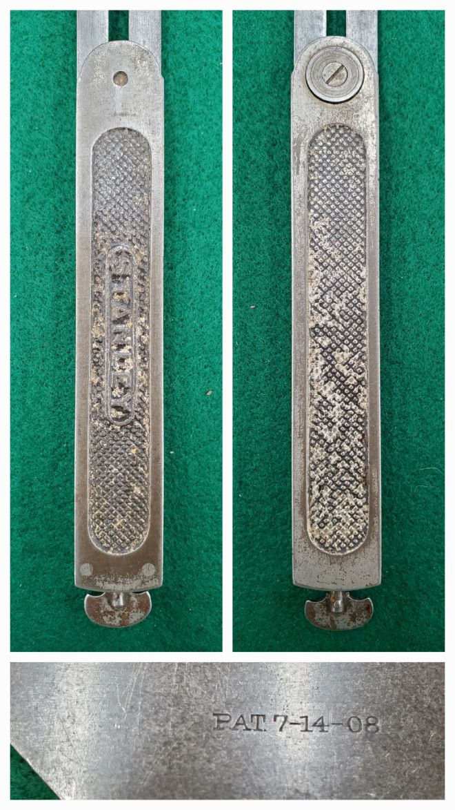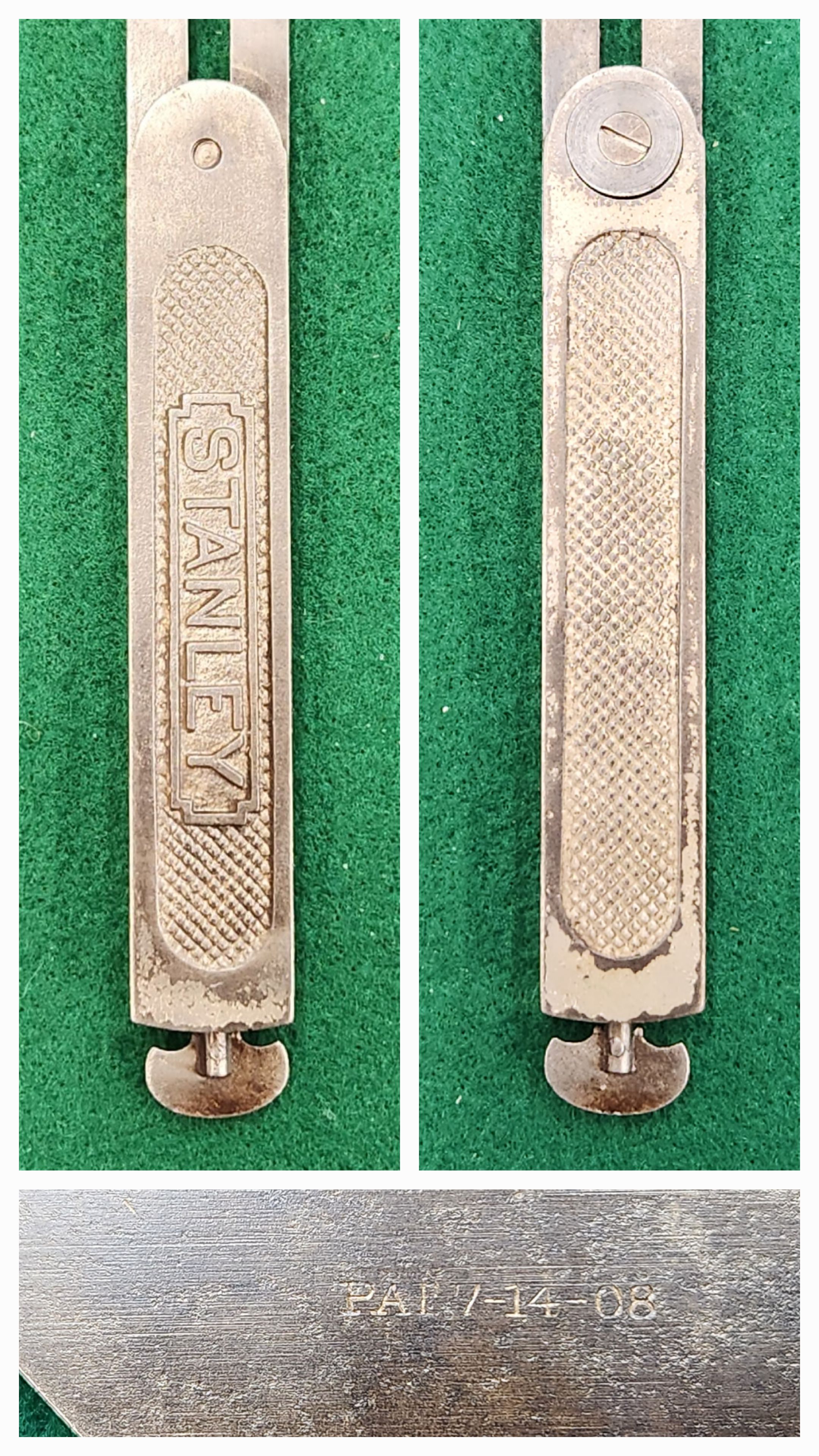 The patent date “PAT’D 7-14-08” is now cast into the handle on the opposite side from "STANLEY". The thumbscrew is stamped “STANLEY NEW BRITAIN. CONN. U.S.A.” in two lines. Blades are no longer marked from here on. [Full Image]