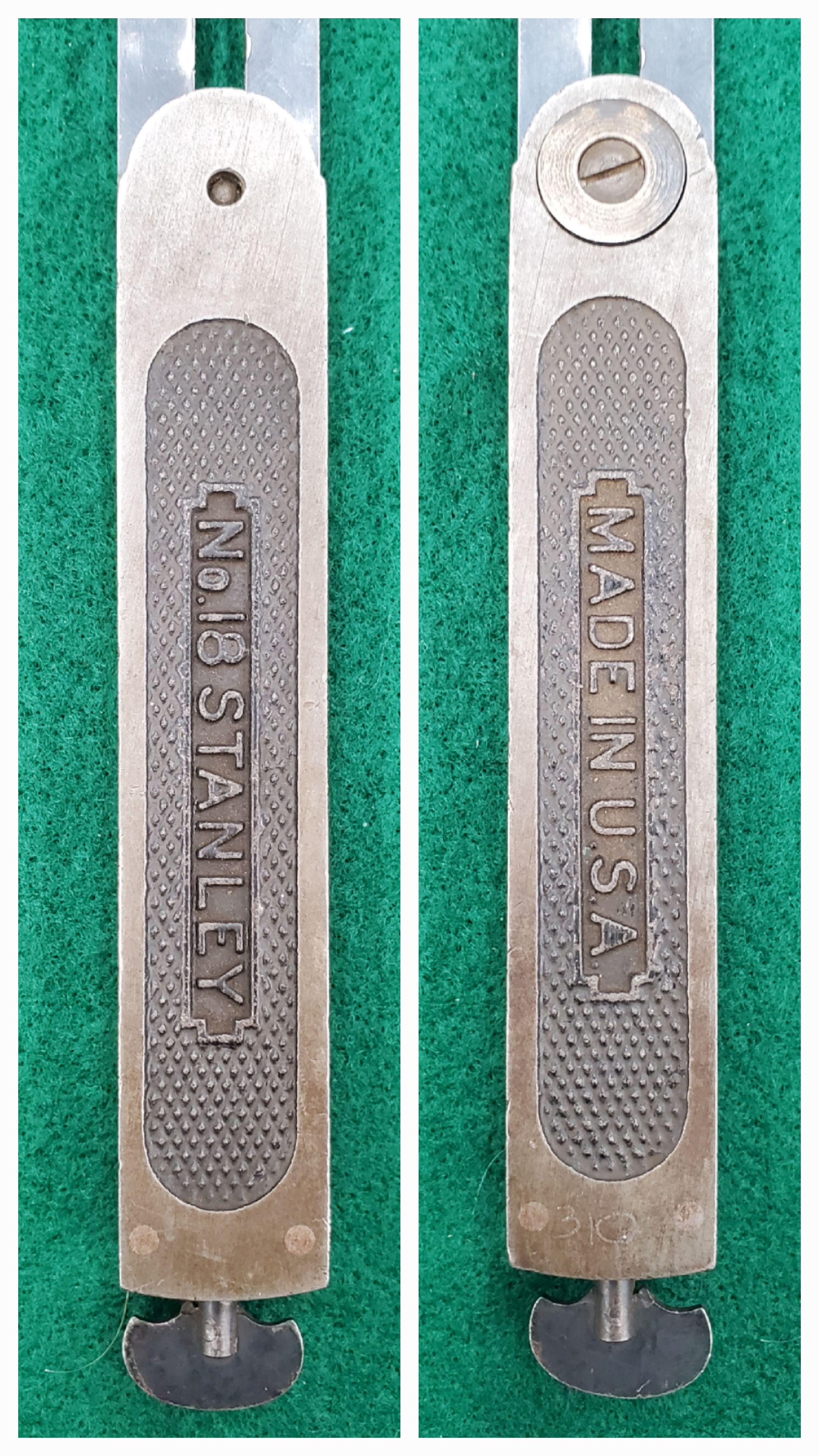 Stippled grips now take the form of a notched rectangle rather than having round ends. The one side now reads just “STANLEY” in the notched rectangle while “No. 18” has been moved to a separate small perpendicular box toward the bottom of the handle. [Full Image]