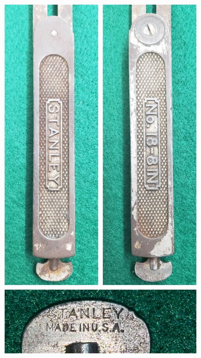 No longer a stamp on the thumbscrew. The handle now reads “No. 18 STANLEY 8 IN” (or 10 IN) and “MADE IN U.S.A” on opposite sides of the handle, both in notched rectangles. The 12”, which was introduced with J, uses the same size handle as the 10”, and this may have been the reason for no longer casting the size into the handle after this style. [Full Image]