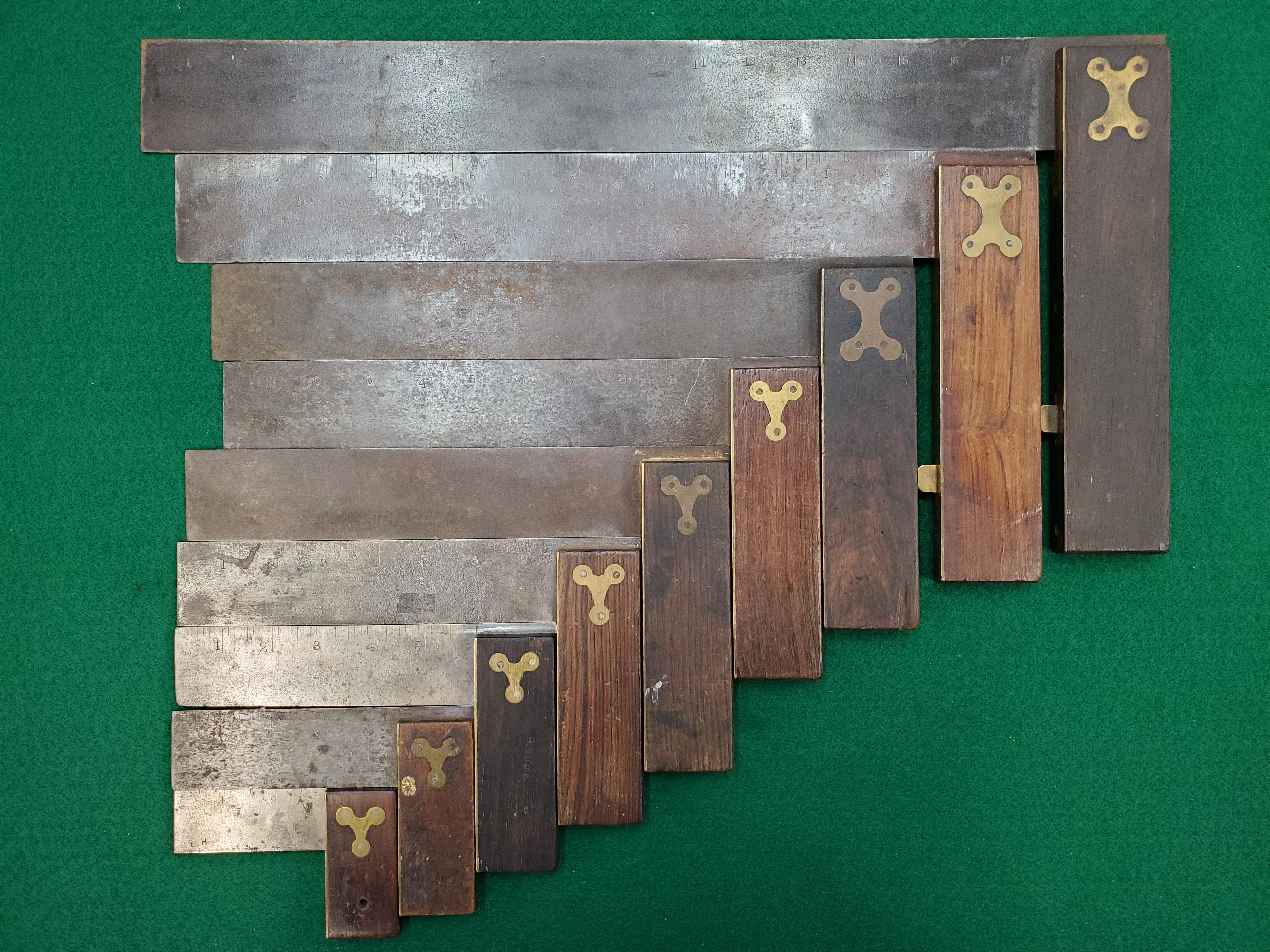 The No 25 was Stanley’s standard wood handled bevel for 157 years! Not many tools have such a long and direct lineage. The long period though results in 9 different types and a total of 31 distinct variations, way too many to show here. Please visit the dedicated page to the No 25. (14", 12", 10", 8", 6")
