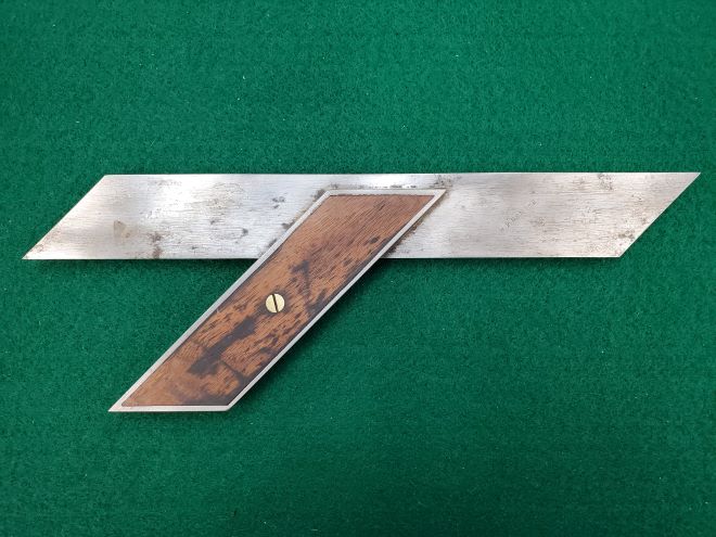Known as a Shipwrights Bevel, the 42 ½ had a long production time, but was not a popular seller and are difficult to find. The 14" brass blade is quite thick and is either unmarked or has a trademark and model number. Despite production having started in 1858 and the lever not introduced until 1877, I have not seen any examples with a wing nut that would date to 1858-1877. If found, those examples would become a Type 1. (14")