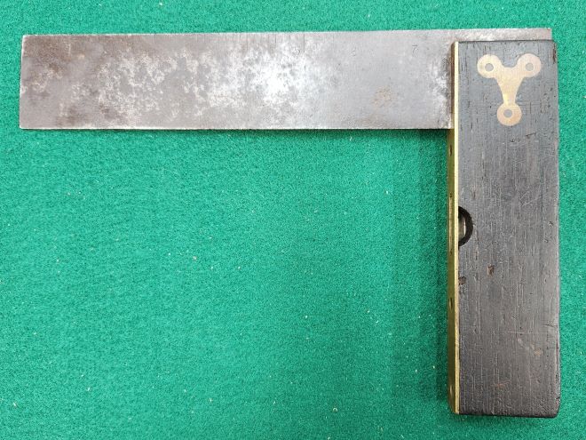 Still called the "Improved Try Square No 1", the handle was already changed to iron for its first appearance in the 1871 catalog. Other than the handle material, there are no changes from the Type 1. The Type 2 is much more common. In 1888 it was permanently designated the No 10. The 9” model is the least common. (12", 10", 9", 8", 6", 4", 3")